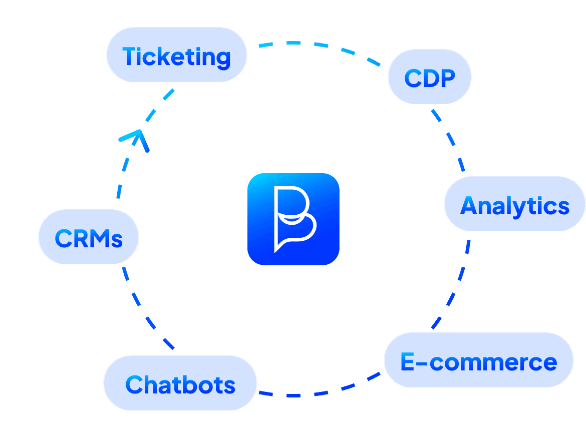 Amplify the power of Blue.AI by effortlessly connecting with your existing CRM, e-commerce, analytics, and other essential business systems for a truly unified customer experience.